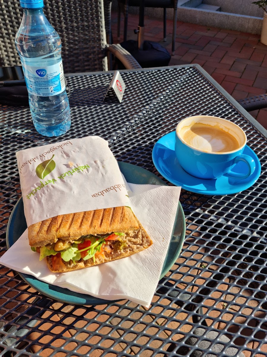 Vegans will also find a delightful option in the Vegan Seasonal BioGemüse sandwich, loaded with fresh organic flavors and robust pesto for only €7.50. The café doesn't stop at sandwiches; their snacks are equally enticing. Treat yourself to a vibrant Açaí Bowl, an energizing blend of açaí, bananas, peanut butter, and crunchy toppings for €6.90, or savor the creamy Avocado TÖast drizzled with high-quality olive oil and spices, all at the same price.